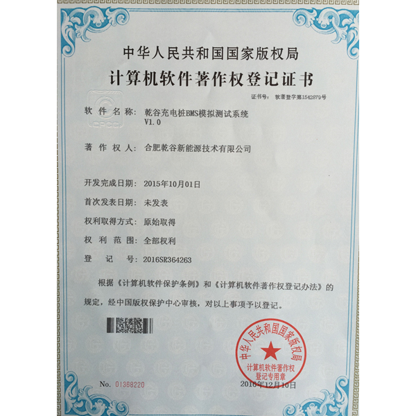 Computer software copyright-Wanggu AC 380V high-power charging pile control system